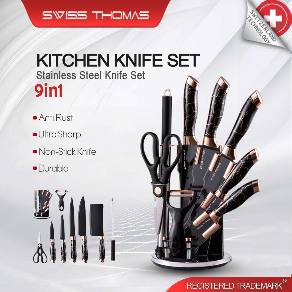 Swiss Thomas Kitchen Knife 9in1Set Sharp & Durable Stainless Steel /Set Pisau Dapur Serbaguna Premium Tajam, Tahan Lama